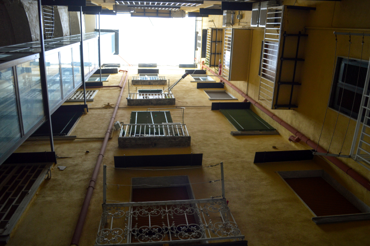 На пересечении сквозных галерей устроен вестибюль восьмиугольной формы. Из него мраморная парадная лестница ведет на второй этаж. Роскошную лестницу называют "Лестницей Славы".