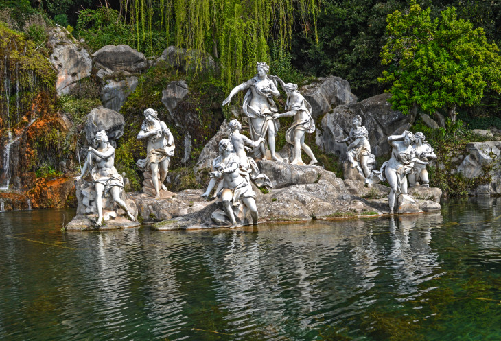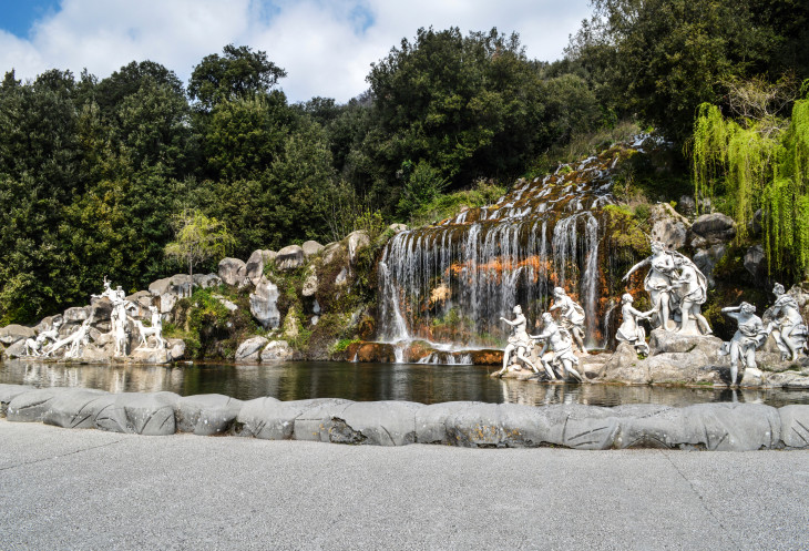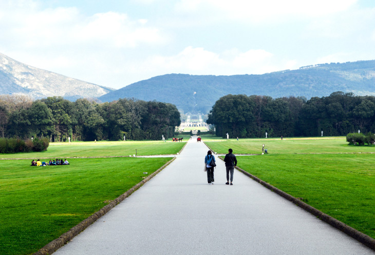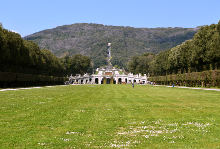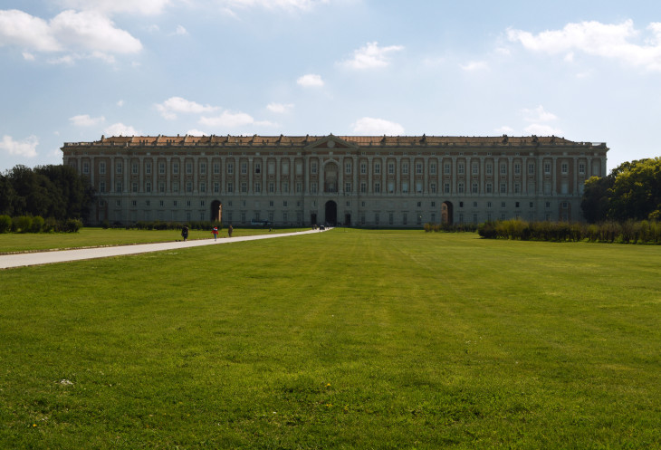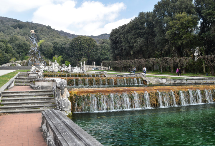 Казерта это небольшой городок, в 35 км. от Неаполя. Там расположен дворцово - парковый комплекс, который еще называют итальянским Версалем. Король Карл VII , по чьёму указанию и строили комплекс, хотел, чтобы новый дворец стал более грандиозным, чем любой другой дворец в Европе. Особенно он хотел превзойти французский Версаль. Поэтому архитектурный ансамбль представляет собой самое большое европейское здание, построенное в 18 веке.Также как и во Франции, при дворце разбит большой парк. Здесь оборудовали Дорогу воды с каскадами фонтанов, проложили тенистые аллеи, разбили террасы. Королевский парк лежит на 120 га земли, растянувшись на 3 км к северу. Рядом с парком также создан ботанический (английский) сад.