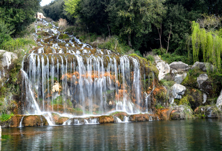 Гранд каскад - искусственный водопад, стекающий со склона и падающий в озеро фонтана, разделяя скульптурные группы.