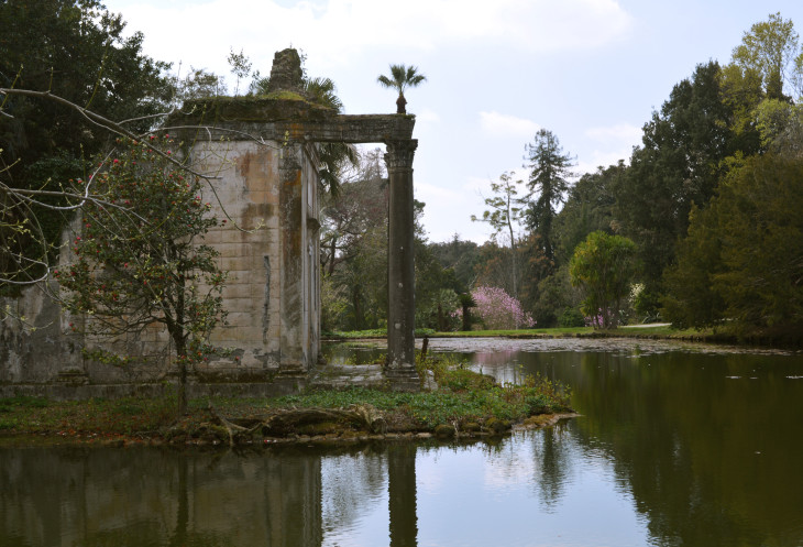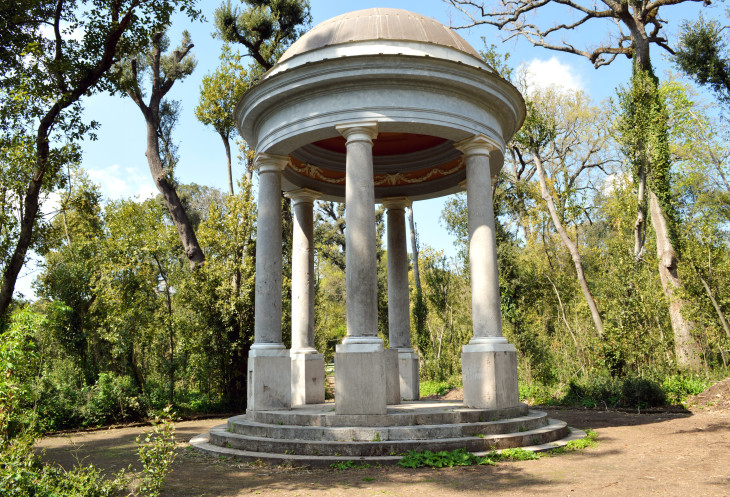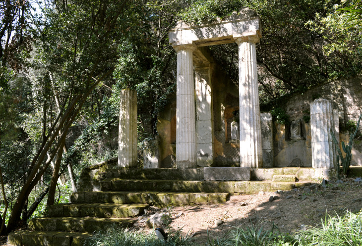 Пойдем смотреть. До сада еще никто из туристов не добрался и мы вошли туда в полном одиночестве под неистовое пение птиц. Свернув налево, почти сразу видим псевдо руины римского или греческого храма.