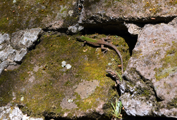 Зато рядом, на каменной стене,бегают удивительно красивые ящерки.