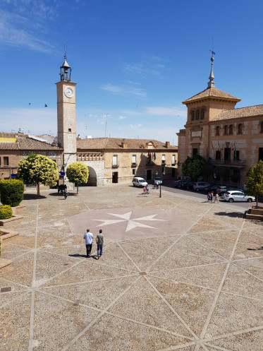 Городок Консуэгра расположен километрах в 60 от Толедо. История типичная для этих мест: сначала римляне,потом все желающие по списку. Последним,до королей Испании,городком владел орден мальтийских рыцарей. В память об этом на главной площади городка,Plaza Espana,остался мальтийский крест.