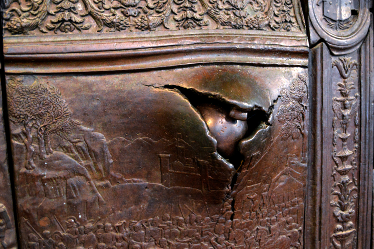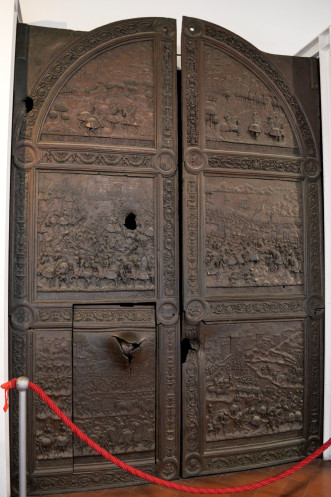Закончили осмотр музеем. Музей расположен на трех этажах. Выставлены там в основном полотна и скульптуры итальянских художников 19-20 вв. Мы, наверно, уже подустали от впечатлений, поэтому посмотрели быстро, без большого интереса, хотя на некоторых полотнах взгляд задерживался немного дольше. Больше всего понравились бронзовые ворота с застрявшим в них ядром.