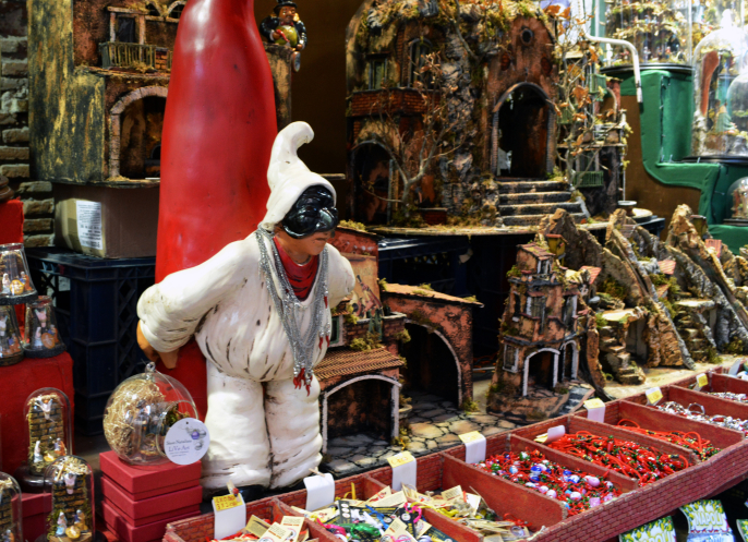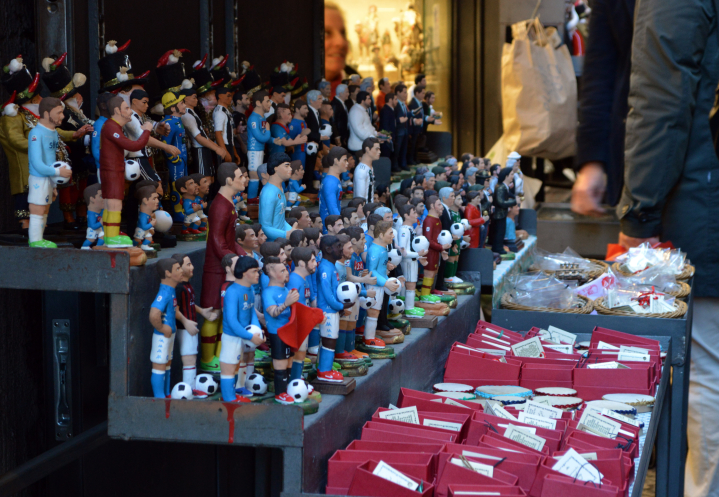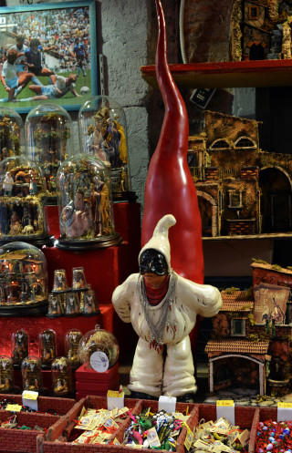 Еще в Неаполе культ Марадонны и футбола. Поэтому фигурки футболистов тоже украшают прилавки.