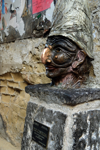 В одной из арок мы обнаружили памятник народному герою - Пульчинелле.