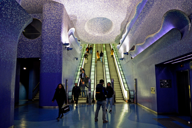 С площади мы спустились в метро и поехали в Археологический музей. Метро все таки интересно оформлено в Неаполе.