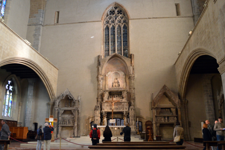 Дальше мы идем в Базилику и монастырь Санта-Кьяра (Святой Клары). Этот исторический комплекс начали строить в начале 14 века. Как водится, ее не раз переделывали. Во время Второй Мировой Войны церковь была почти полностью разрушена, восстанавливали ее в 50х годах в течении десяти лет.