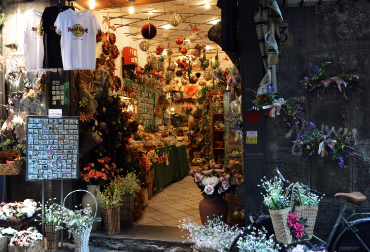 В галерее расположены дорогие бутики и рестораны, но из за реставрации многие закрыты.