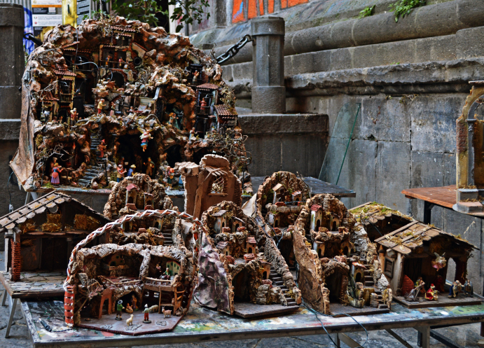 Эту улицу можно назвать музеем Презепе. Презепе ( Рождественский вертеп) это традиция составления рождественской композиции, которая представляет собой сцену Рождества Христова.
