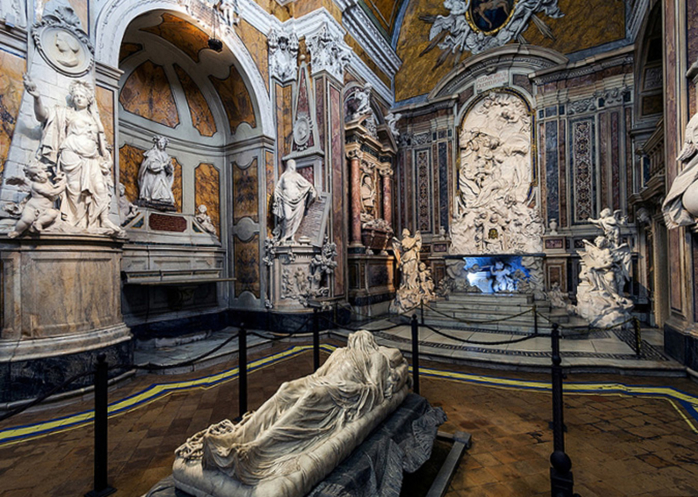 Капелла принадлежала князьям рода Сан - Северо и была семейной усыпальницей. В архитектурный шедевр капеллу превратил последний, седьмой князь рода Раймондо-де-Сангро в середине 18 века. По его заказу семейная усыпальница была перестроена и наполнена просто уникальными мраморными скульптурами.