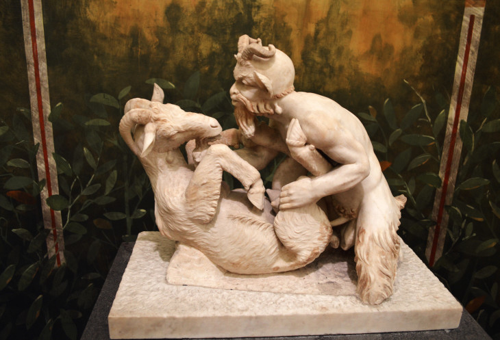 Удивила своим исполнением статуэтка, изображающая совокупление двух рогатых и копытных. Мужскую роль играет древнегреческий бог Пан.