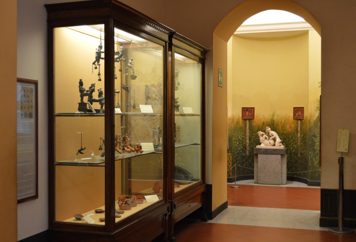 Это небольшая комната, где собраны находки эротического и даже порнографического содержания, которые были найдены в домах при раскопках. Оказывается, что скульптуры, фрески и предметы для украшения дома откровенного содержания в античных городах были распространены повсеместно, причем с изображением любви не только между мужчиной и женщиной, но и однополой, и с животными. В виде мужских гениталий делались лампы для благовоний, колокольчики на двери, талисманы и брелки.