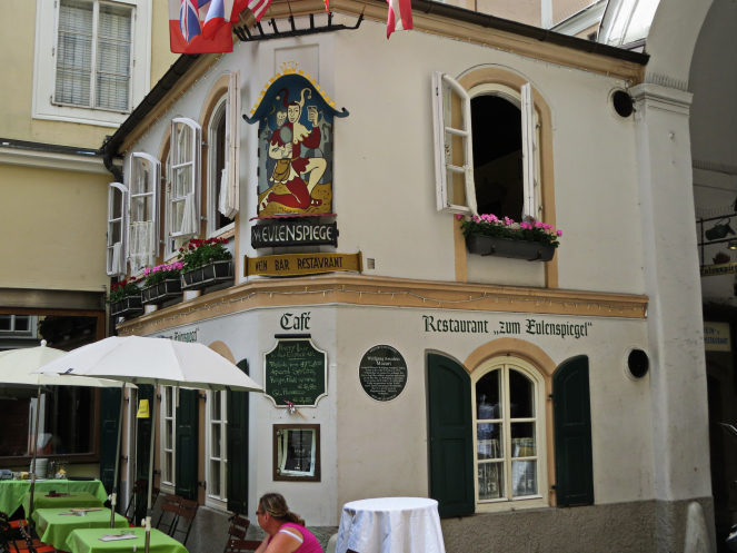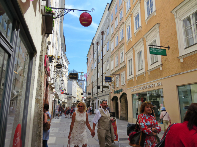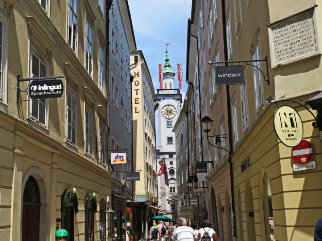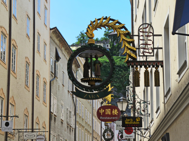 украшенная оригинальными вывесками. Кроме дома, в котором родился Моцарт, здесь расположены модные магазины, уютные кафе и рестораны.