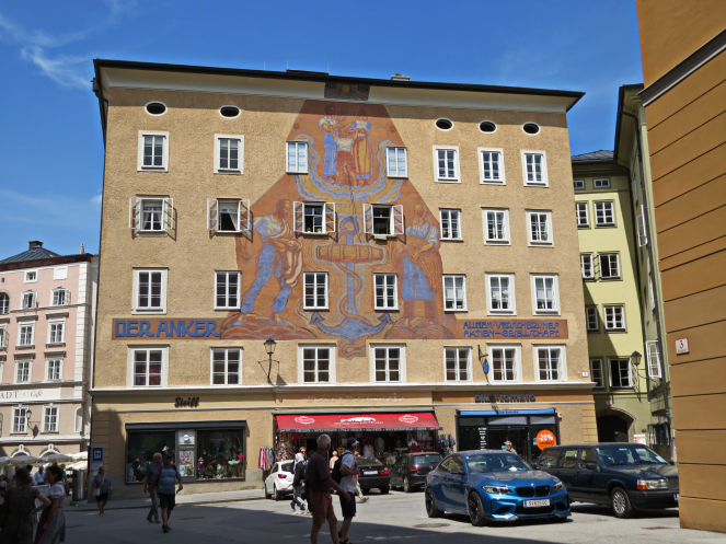 В старом городе Зальцбурга много интересных домов. Например вот такие: