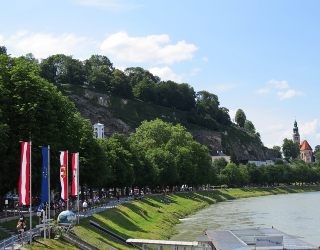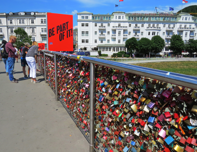 На левом берегу реки Зальцах- старый город, туда и двигаемся. Мост Makartsteg самый знаменитый мост в Зальцбурге. К нему приходят влюбленные, гости, оставляя после себя "замочки на вечную любовь",