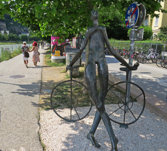А в 2-х минутах от Макартплац на набережной Зальцах отдыхает у своего велика "Велосипедист"