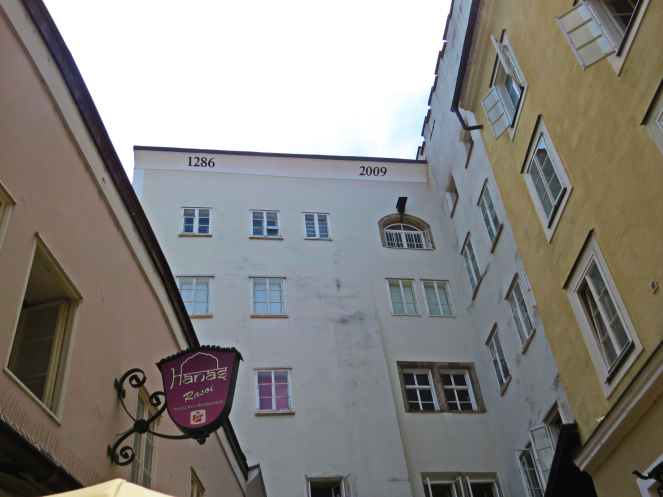 Caмый Маленький Дом Зальцбурга - Kleinstes Haus Salzburgs. На площади Альтер Маркт (10а) расположен самый маленький дом в городе - всего 1 метр 42 сантиметра шириной (был построен примерно между 1830 - 1860 годами, по другим данным - в XV веке). Сейчас здесь расположен эксклюзивный ювелирный магазин.