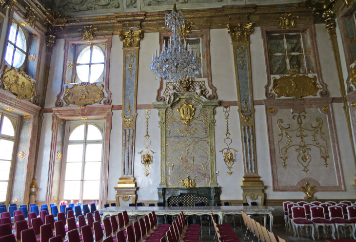 Очень красив Мраморный зал дворца, который раньше был парадным залом князей-архиепископов.