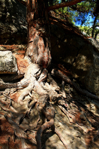 А это дерево мы встретили уже когда вышли из ущелья к Голубой бухте. Тут уже даже я не могла остаться равнодушной - ветви его изогнуты были настолько фотогенично, и "приглашали" присесть на них, что мы не могли не устроить пятиминутную фотосессию))
