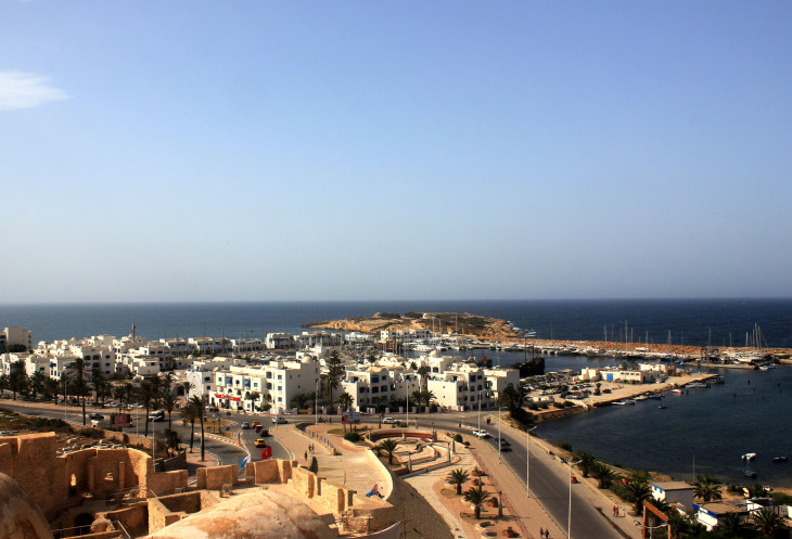 Главное, что открывается взору при выходе из башни – вид на море, – строили башню приморской военной крепости не для того, чтобы рассматривать медину. Тем не менее, мечеть Хабиба Бургибы открывается во всей красе. А за ней медина, а дальше современный Монастир, а перед мечетью – центральный парк и ещё один рибат – Сиди Дуиб, поменьше, от которого сохранился только первый этаж, и тот восстанавливали.