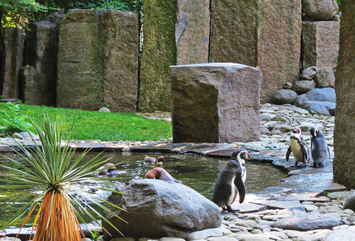В дикой природе пингвины создают пары на всю жизнь, также происходит и в зоопарках. В Пражском зоопарке одинокие пингвины начинают искать себе пару в конце сентября. У пингвинов, как и у многих птиц в зоопарке, есть таблички с кнопочкой, демонстрирующей их крики.