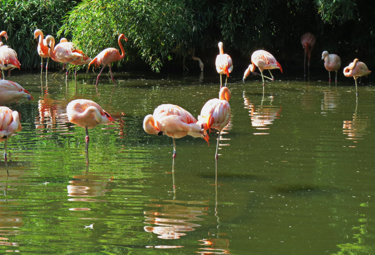 Здесь живут красавцы-фламинго. Решила, что пока не жара и птицы не спрятались от солнца по кустам, я должна их увидеть. Зрелище грандиозное.