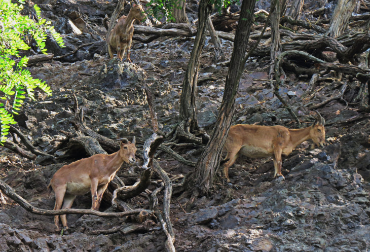 Я их вообще сначала не увидела, пока случайно не подняла взгляд вверх. Вдруг начинаешь замечать какое-то движение на скале, и взгляд останавливается на одном из двигающихся животных. Вот оно- То, что я не заметила! Теперь вижу целое стадо! В их распоряжение предоставлен весь горный склон. Так что этих горных таров можно наблюдать практически в родной для них обстановке.