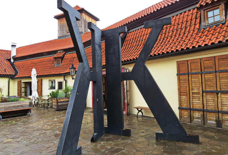 Далее мой путь лежал через Староместскую площадь, мимо музея Кафки. У самого входа в музей в виде развёрнутой книги предстают две колоссальные буквы «К». Музей Франца Кафки