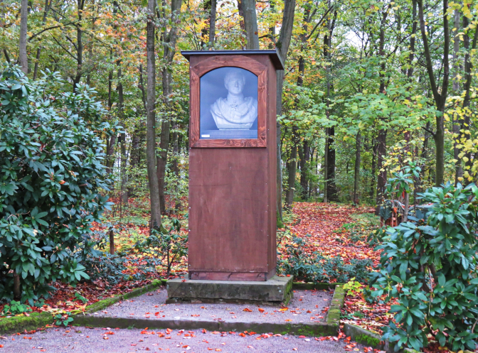 Почти напротив замка Фридриха стоит бюст саксонского короля Иоганна (король-поэт правил в XIX веке).Памятник Иоганну Саксонскому в Кенигштайне