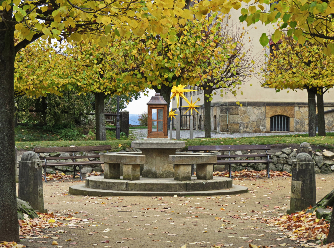 Площадь Августа украшена с предстоящему Рождеству, Кёнигштайн начинает готовиться к празднику уже в начале ноября. Площадь заложена в 1815 г. в честь первого саксонского короля Фридриха Августа.