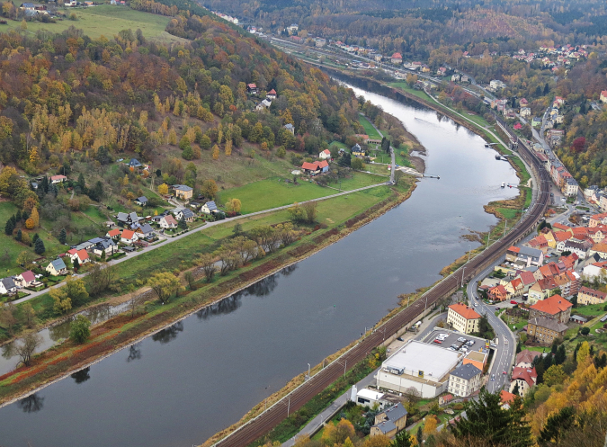 Там внизу течет речка Эльба или Лаба, это уж как хотите. По берегам извилистой реки уютненькие городки Велен и Ратен. Кстати, Ратен совсем недавно отметил свое 750-летие