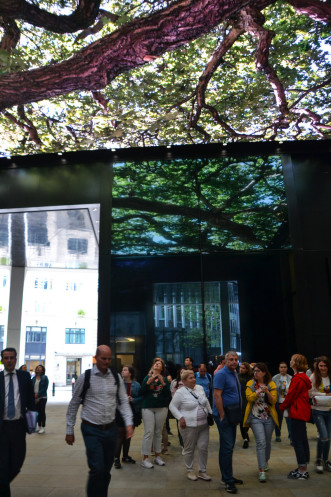 Еще одна смотровая площадка - The Garden at 120 . Тоже совершенно бесплатно и даже без предварительной записи. Пройдя небольшой досмотр, как в аэропорту, вы можете подняться на лифте на 15-й этаж и любоваться видами Лондона. Но маленькая ложка дегтя есть и здесь. The Garden at 120 находится в офисном здании и в выходные дни, когда офисы закрыты, вам туда не попасть. Вот мы и не попали. Смогли только насладиться необыкновенным живым панно на потолке в холле здания. Потолок этот превращен в огромный экран, на котором постоянно демонстрируются картины живой природы. Потрясающее зрелище! Даже если вы не захотите подниматься в The Garden at 120, зайдите в здание, чтобы полюбоваться этими картинами.