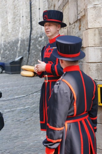 Кстати об экскурсоводах в Тауэре. Зайдя туда, вы сразу увидите представительных товарищей в темно-синем с красной отделкой наряде, напоминающих что-то среднее между кучером и дворецким. Однако, ни теми, ни другими эти люди не являются. Это – бифитеры.