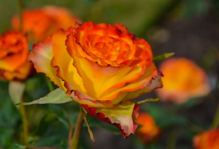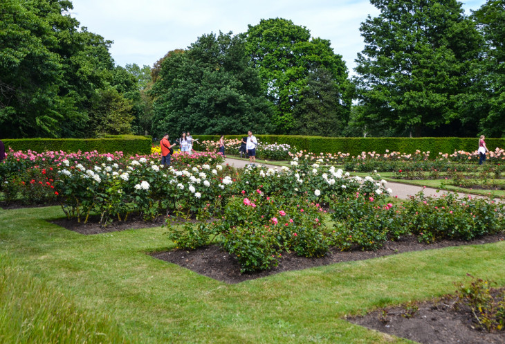 Можно ходить по дорожкам между клумбами с розами самых разнообразных форм и расцветок, можно сидеть на скамеечке, наслаждаясь общей панорамой этого места.