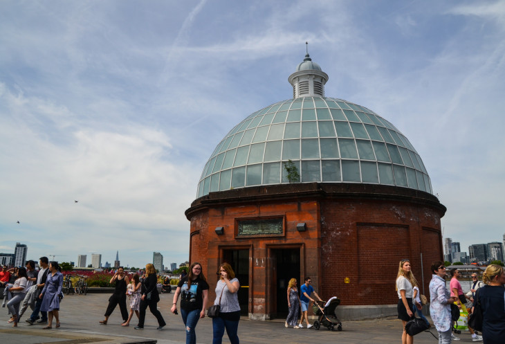 При ближайшем рассмотрении оказалось, что это выход из пешеходного туннеля под Темзой, соединяющего Гринвич с Собачьим островом и построенного еще в конце XIX века.