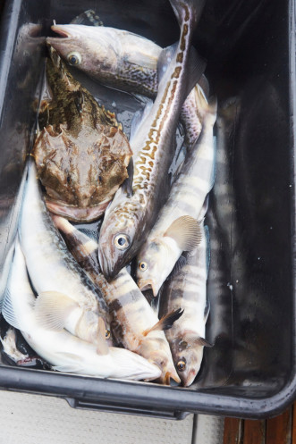 Наловили целое ведро самой разной рыбы - терпугов, треску, минтая, еще каких-то нам совсем не известных морских тварей. Тут же на катере их зажарили и съели - лучшая рыба в жизни!
