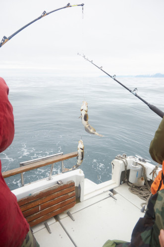 После удовольствий эстетических, переходим к гастрономическим. Но прежде чем есть, еду надо еще поймать. Морская рыбалка на Камчатке- это просто чудо какое-то. Я обычно совершенно не люблю рыбалку. Но тут, когда грузило еще не успевает опуститься, а уже надо вытаскивать, и при этом вытаскивается крупная вкусная рыба, а то и по 2-3 за один заброс. Как не радоваться такой рыбалке.