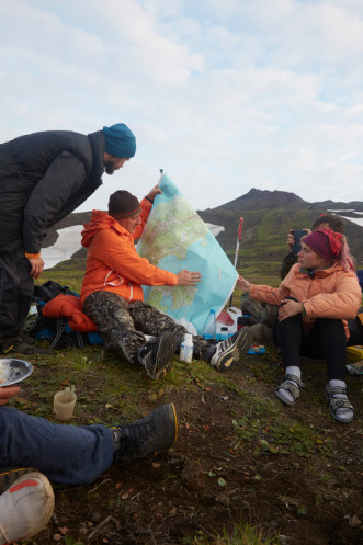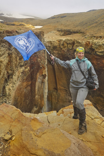 И как-то неожиданно, оказалось, что у нас уже не просто поход, а экспедиция Русского Географического общества приуроченная к 175-летию оного. Для меня переход оказался хоть и неожиданным, но абсолютно не заметным. По сути, ничего в нашем маршруте не изменилось, только добавился красивый синий флаг с глобусом. А еще у нас была ночь географии - познавательные лекции у костра под вулканом. Я наконец-то послушала профессионального геофизика обо всех этих процессах, которые создают Камчатку здесь и сейчас. Вот именно чего-то такого мне очень не хватало в первых походах по Камчатке.