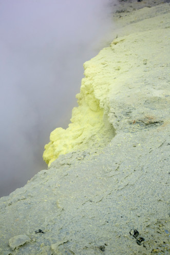 Вышли мы к фумарольным полям - здесь сера, и горячий пар, и теплая земля.