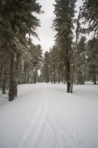 Я снегу рада - я вообще люблю пейзажи со снегом. И люблю, когда пахнет свежим снегом и воздух им как-будто наполнен. Дышу и пытаюсь надышаться на все лето! Ну, и не могла не сфотографировать любимый вид - лыжня среди заснеженных деревьев. Нет, лыжня не наша, просто была там.
