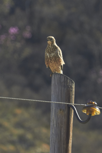 Еще поездили вдоль дороги, сфотографировали сколько-то хищных птиц на столбах - все они там сидят, отдыхают. Есть места, где прямо на каждом столбе по птице. Вот, например, сапсан.