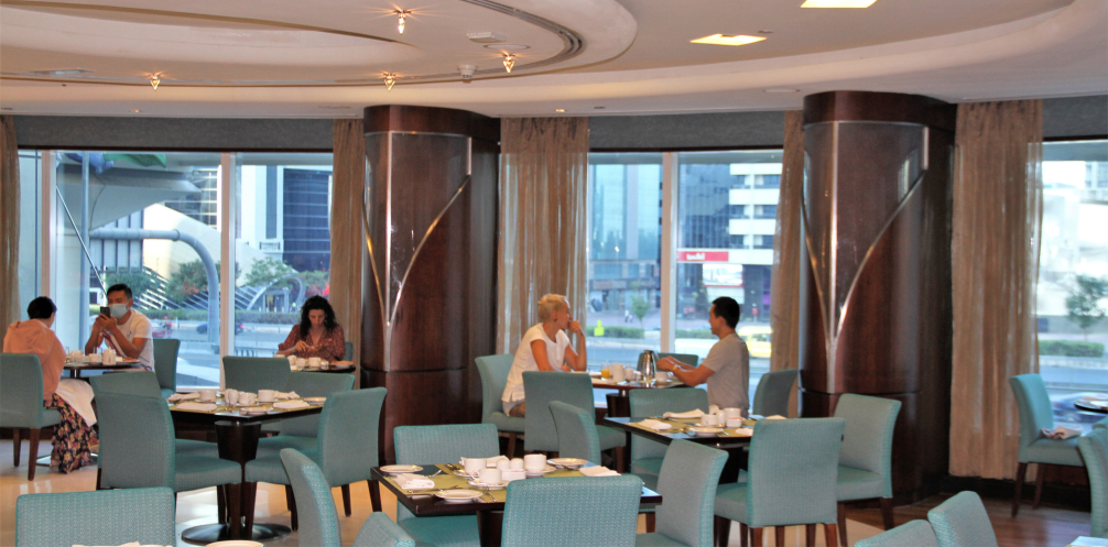 Внизу в лобби шикарное кафе с изумительной выпечкой и вкусным кофе... Ресторан отеля работает на системе полного дня с обедами и ужинами - специфика ужинов - заказ по меню даже при все включено... есть переведенное меню на русском языке... на завтраках широкий выбор закусок, горячих блюд и конечно выпечка... подают официанты - и иногда приходится пару минут постоять в ожидании... но все согласно современным правилам по борьбе с ковидом... мест в зале много и очень уютно... ну и для постояльцев, заказавших клубные номера на 6 этаже есть прекрасный тихий лаунж, где можно поработать и отдохнуть за чашечкой кофе...
