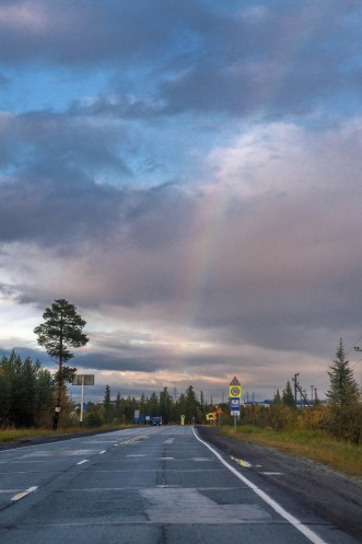 После обеда мы тронулись дальше, направляясь в Тарко-Сале. Хорошо, хоть по другой дороге, отсыпанной щебнем, но относительно ровной. Машин почти нет, кругом тундра, лесотундра. Они разноцветные (!), несмотря на мрачную погоду с моросящим дождичком.