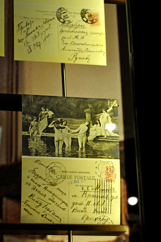А также витрина почтамта с письмами и открытками. Мое внимание привлекла одна… отправленная сыну и мужу… Нравы были веселые и радостные, чего уж тут греха таить.