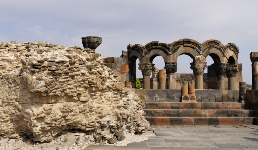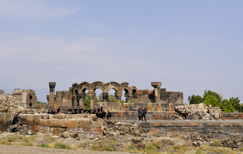 Отличие этого раннехристианского храма от других армянских церквей не только во внешнем облике, судить о котором можно только по реконструированному макету, но и в местоположении. Как правило, все армянские храмы стоят где-нибудь на возвышениях или вообще спрятаны в ущельях. Этот же красуется на плоской долинной территории. Вокруг него простор, небо с самолетами близлежащего аэропорта «Звартноц».