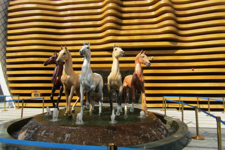 в Туркменский зашла из-за привлекающего вида павильона с фонтаном и четверкой ахалтекинцев. А ещё я у них в кафе попила чай (об этом чуть выше)