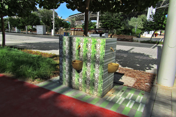 Павильон показался мне очень скучным, как будто я попала в Дом Культуры советского периода. Не этого я ожидала. Кстати, воду в баночках, которую можно взять бесплатно у волонтёров, в местном магазинчике продают по 10 дирхам, т.е. 200 рублей за штуку. Интересно, да?