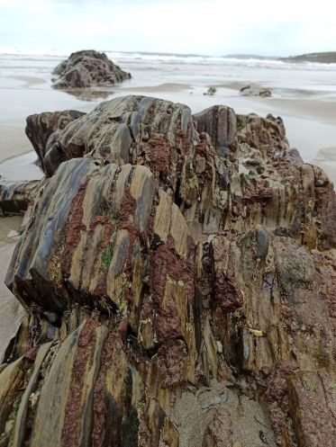 Мы с бОльшим удовольствием «ползали» по живописным скалам, обрамляющим пляж с восточной стороны бухты. Слово «ползали» наиболее применимо к способу передвижения по скользким во время отлива камням и песку, по которому струилась вода впадающего в море ручья.
