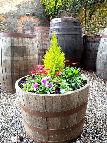 Большой перегонный куб, называемый pot, старинные весы и отслужившие «дубовые бочки на пенсии» украшали двор.