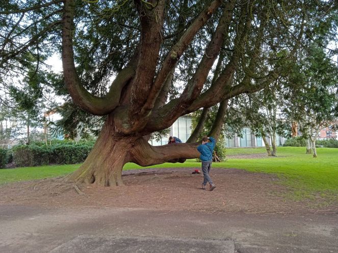 На этот день у нас был запланирован всеобщий выезд в парк Fota Wildlife Park и город Cobh. Но в последний момент Тим вспомнил, что у него всё ещё каникулы. И решил провести их в пассивном отдыхе. Поскольку обе «точки интереса» находились примерно на равном удалении от дома, мы обсудили последовательность мест посещения методом голосования. Проглянувшее солнце склонило к мысли начать с природной достопримечательности. А при въезде в парк мы столкнулись с неожиданно большим для пятницы количеством посетителей. Проблему поиска места парковки решал специальный сотрудник парка. Нам он указал на дальнюю стоянку, которая оказалась совсем рядом с входом в «ботаническую часть» парка.